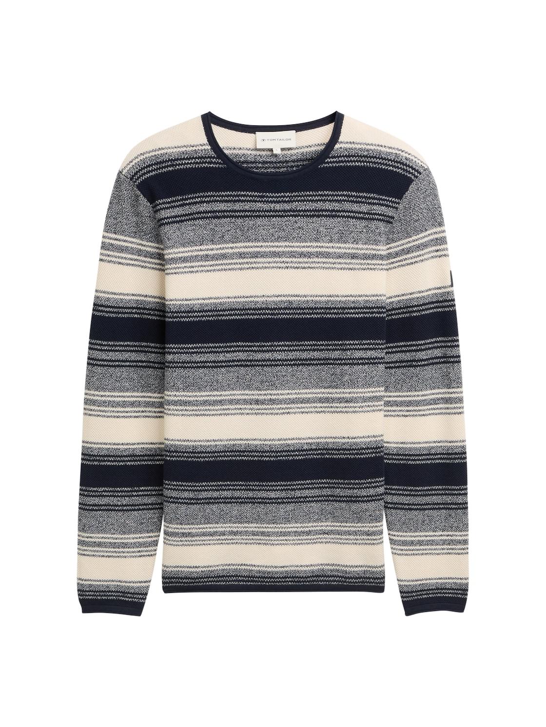 TOM TAILOR Herren Strickpullover im Streifenmuster, weiß, Gestreift, Gr. M
