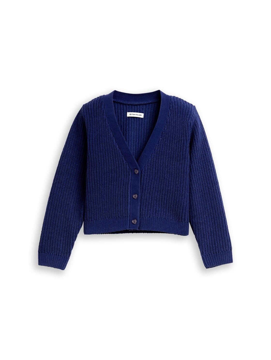 TOM TAILOR Mädchen Cardigan mit V-Ausschnitt, blau, Uni, Gr. 128/134