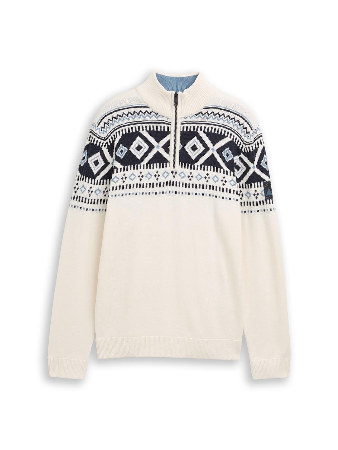TOM TAILOR Herren Fair-Isle Troyer Strickpullover, weiß, Gemustert, Gr. XXL