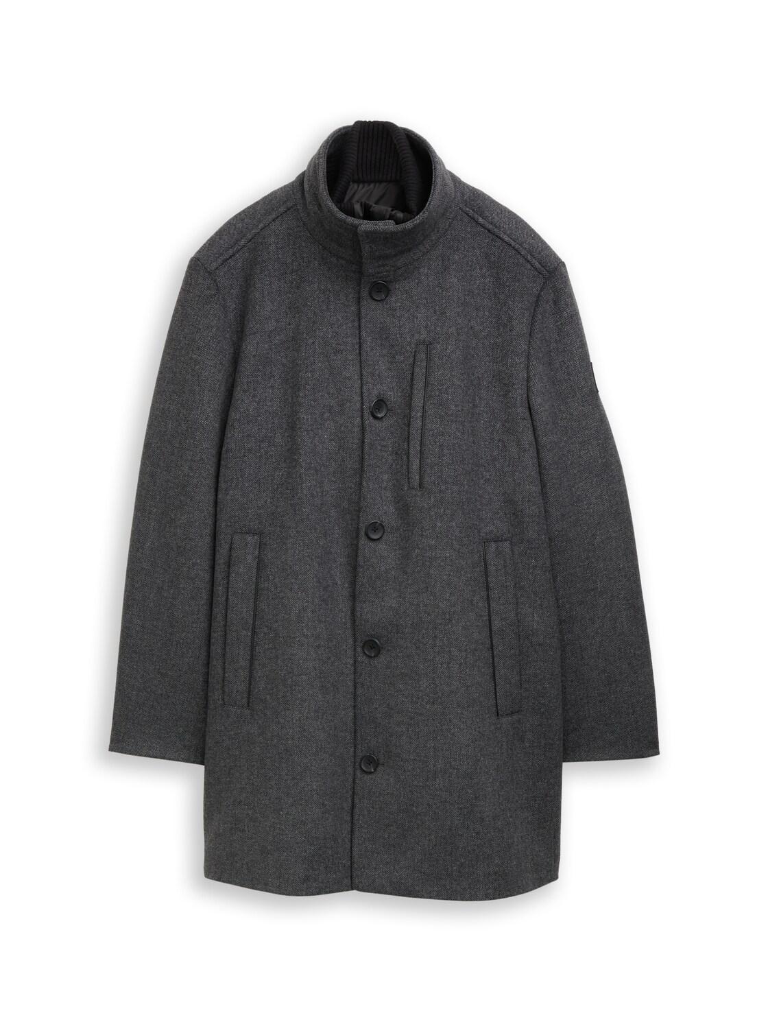 TOM TAILOR Herren 2-in-1 Wollmantel mit abnehmbarer Innenjacke, schwarz, Meliert, Gr. XL