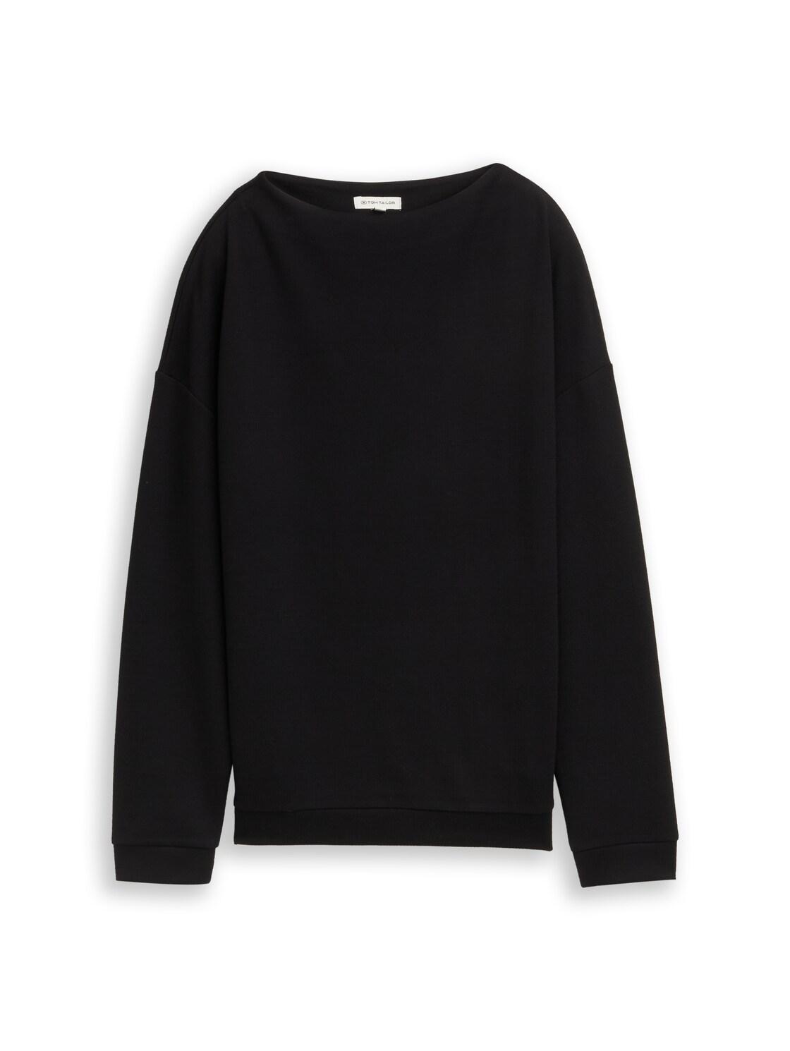 TOM TAILOR Damen Loose Fit Sweatshirt mit Stehkragen, schwarz, Uni, Gr. XL