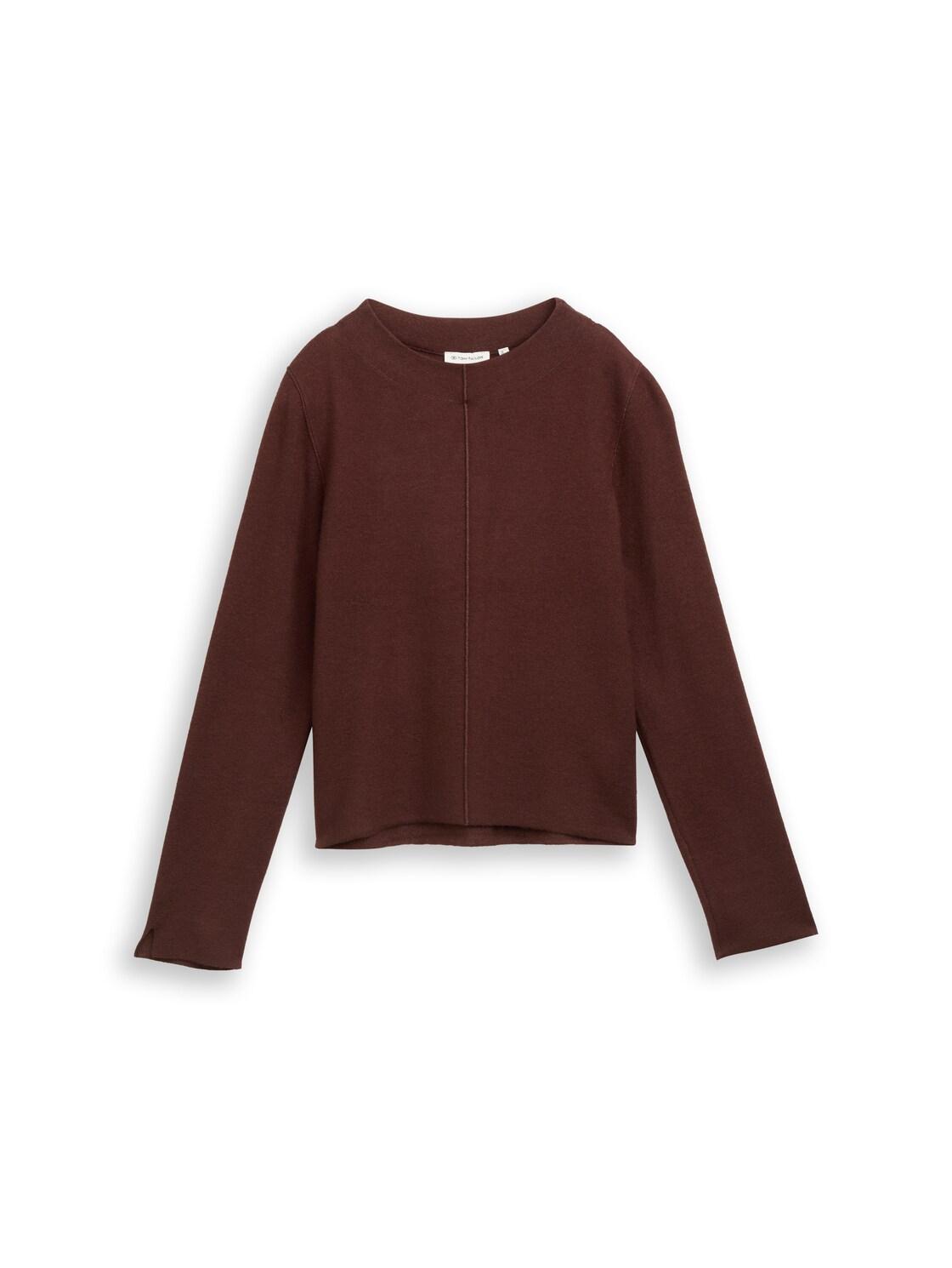 TOM TAILOR Damen Cropped Strickpullover mit Stehkragen, braun, Meliert, Gr. XL