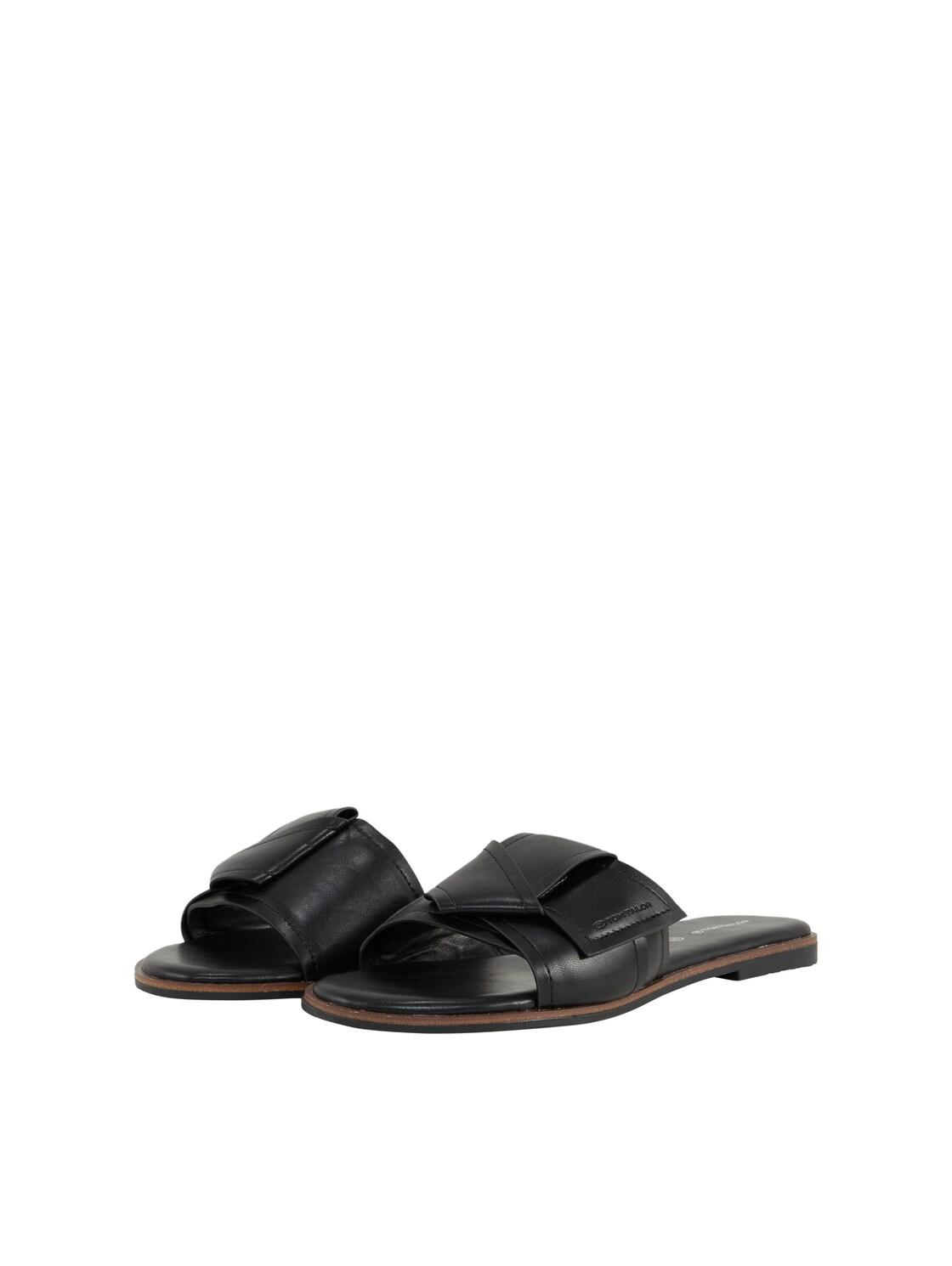 TOM TAILOR Damen Flache Sandalen mit Schleifen-Detail, schwarz, Uni, Gr. 37