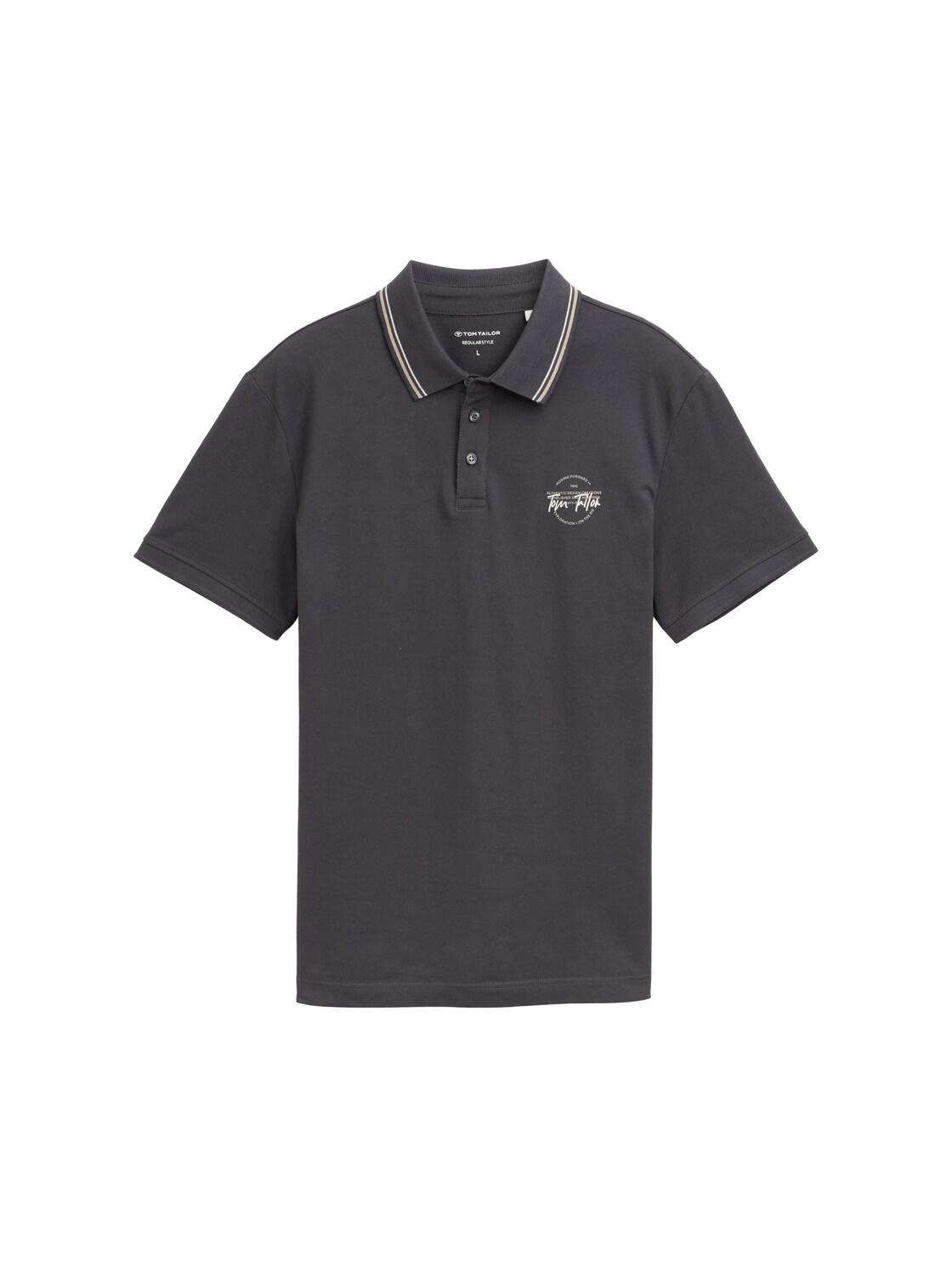 TOM TAILOR Herren Piqué Poloshirt mit print, schwarz, Uni, Gr. S
