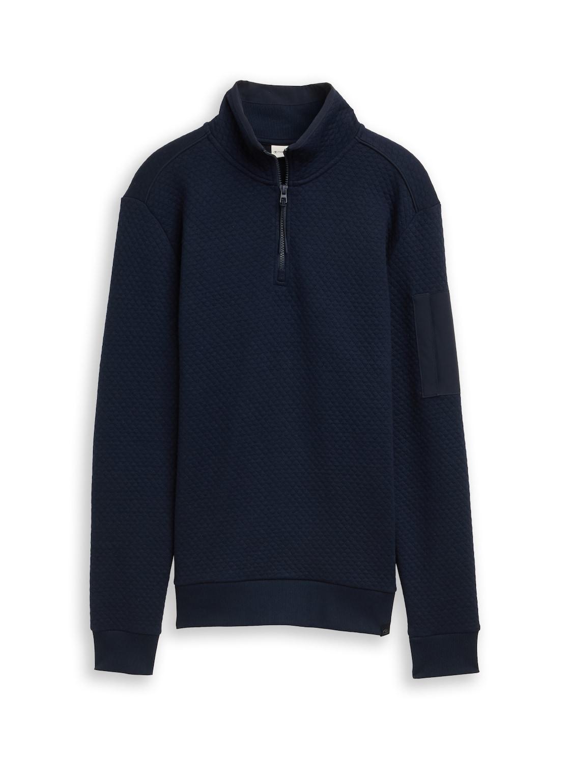 TOM TAILOR Herren Troyer Sweatshirt mit Ärmeltasche, blau, Uni, Gr. S