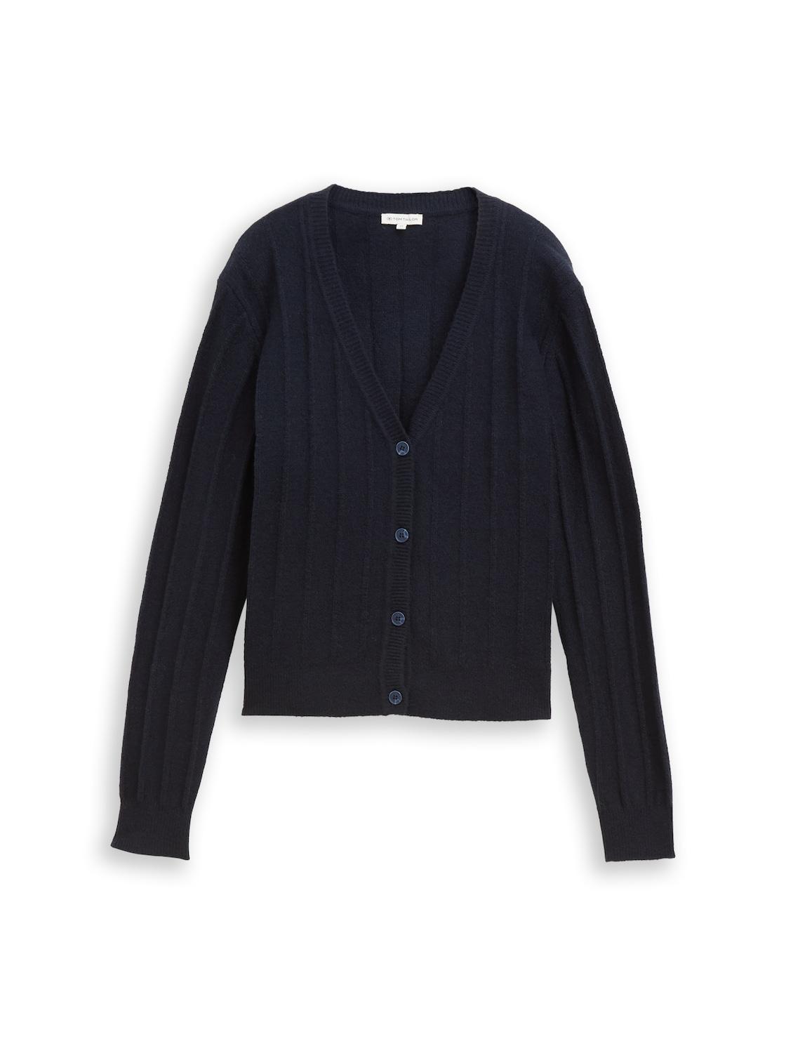TOM TAILOR Damen Rib Cardigan mit Wollanteil, blau, Uni, Gr. XXL