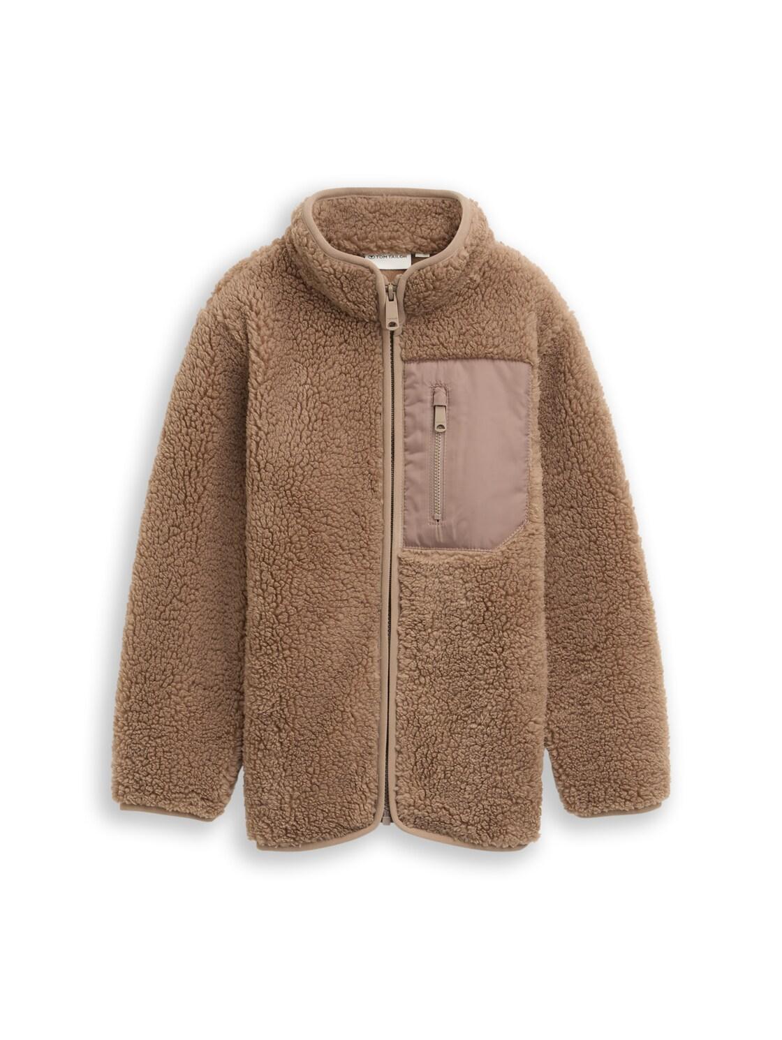 TOM TAILOR Jungen Teddy Sweatjacke mit Fleece, braun, Uni, Gr. 128/134