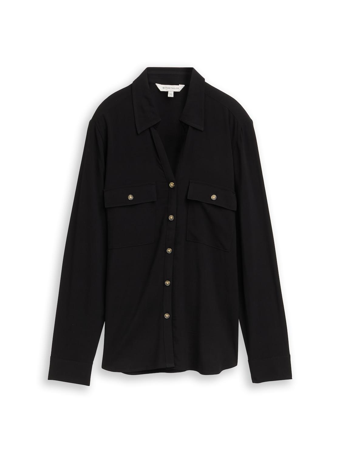 TOM TAILOR Damen Hemdbluse mit Brusttaschen, schwarz, Uni, Gr. 40