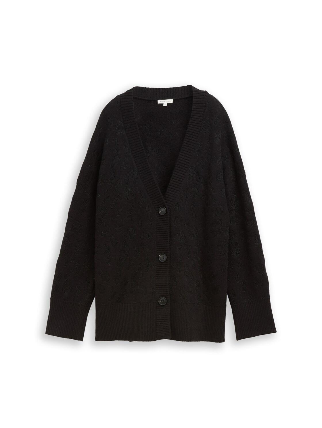 TOM TAILOR Damen Oversize Cardigan mit Glitzer-Effekt, schwarz, Gemustert, Gr. XL