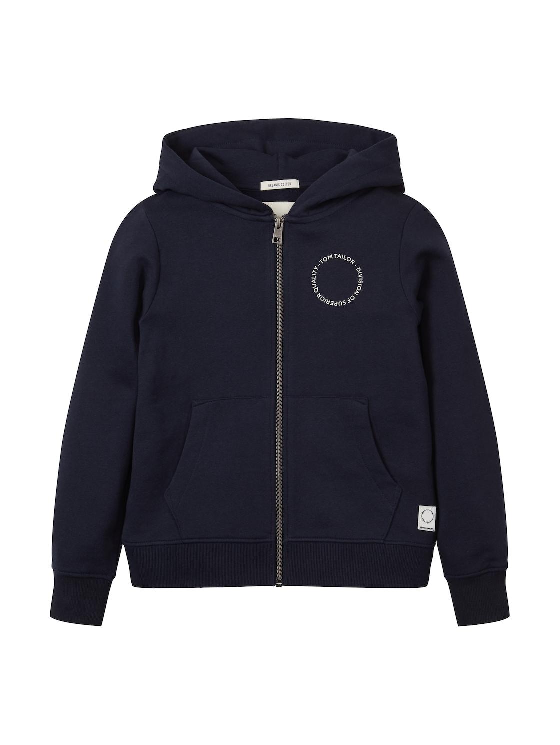 TOM TAILOR Jungen Hoodie Sweatjacke mit Print, blau, Logo Print, Gr. 152