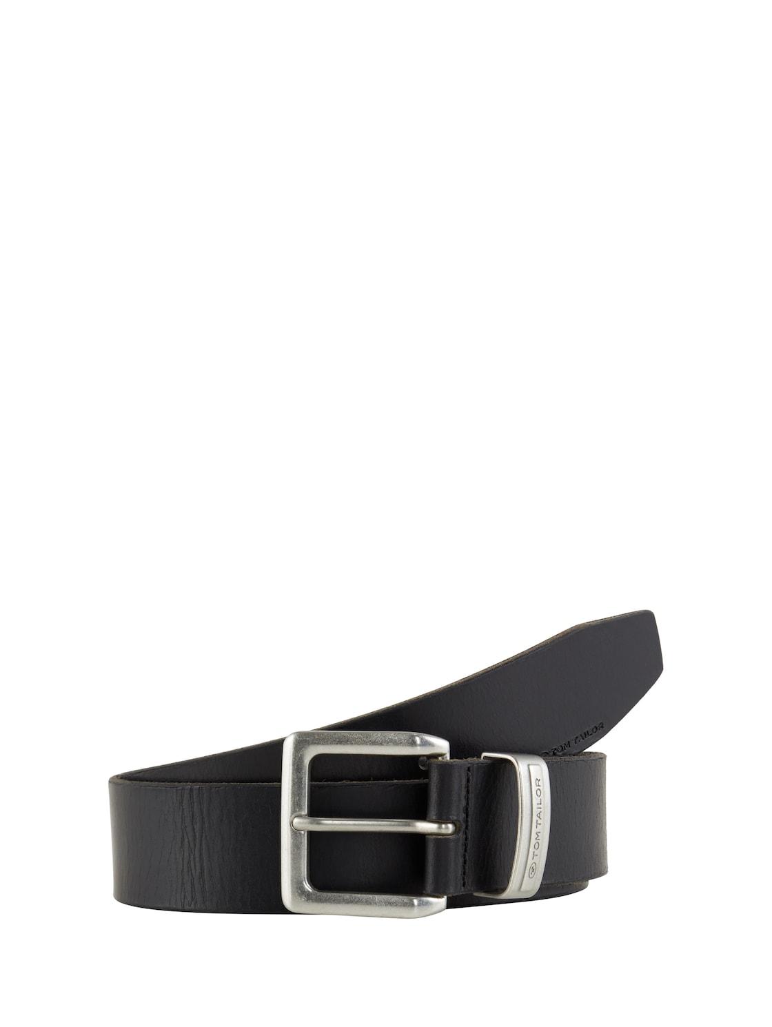 TOM TAILOR Herren TTJACOB Ledergürtel mit eckiger Dornschließe, schwarz, Uni, Gr. 95