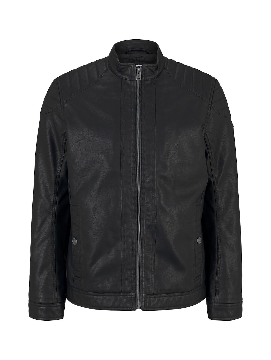 TOM TAILOR Herren Bikerjacke aus Kunstleder, schwarz, Uni, Gr. L