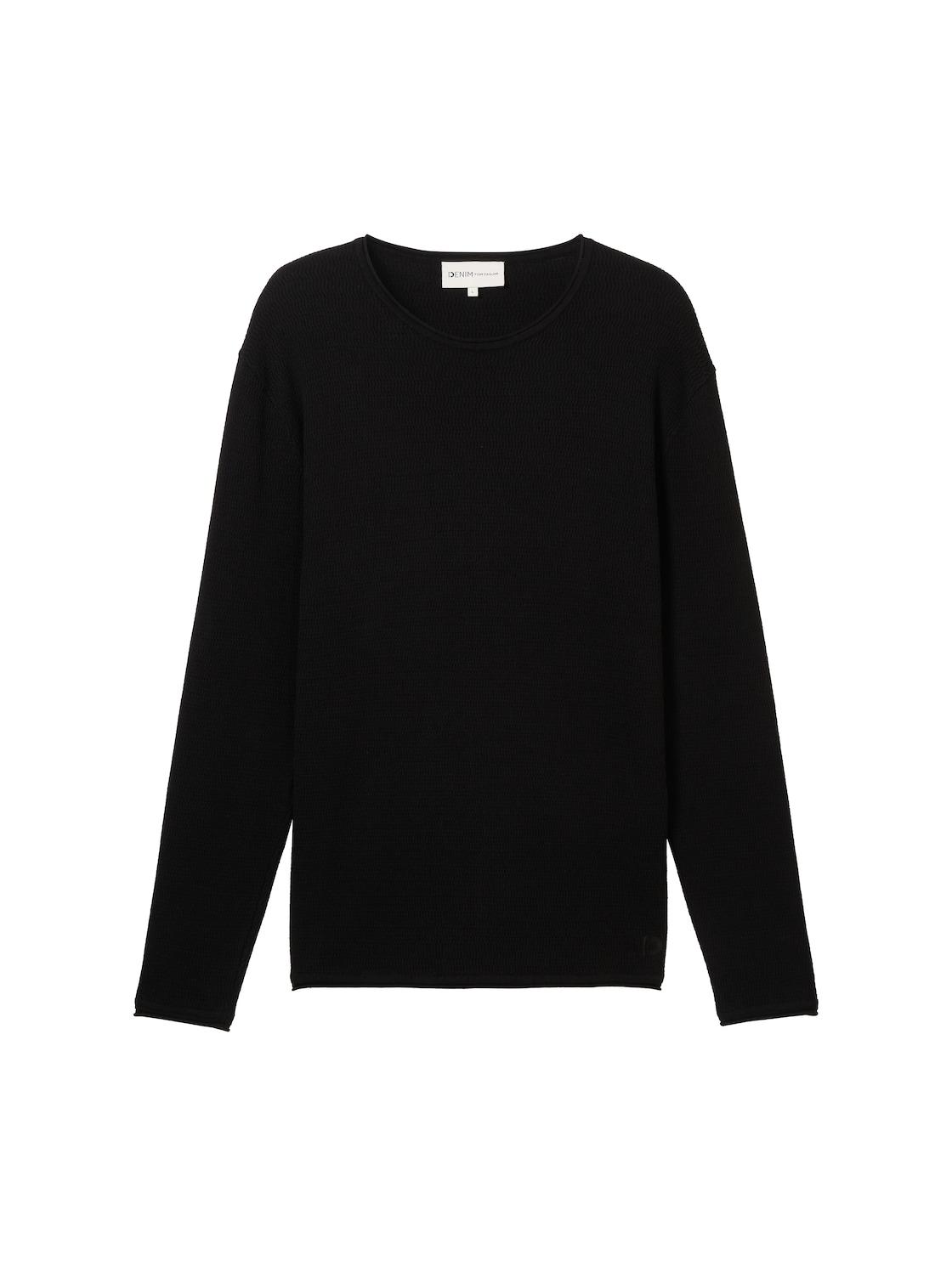 TOM TAILOR DENIM Herren Strickpullover aus Baumwolle, schwarz, Uni, Gr. XXL