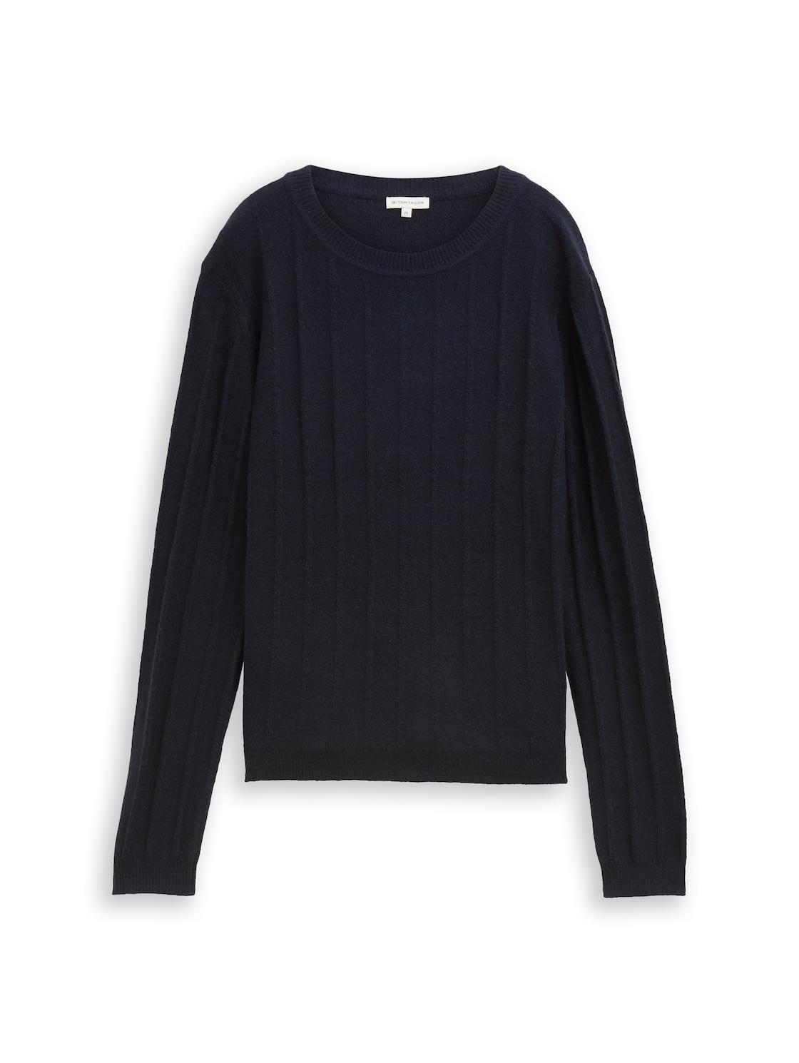 TOM TAILOR Damen Rib Strickpullover mit Wollanteil, blau, Uni, Gr. XS