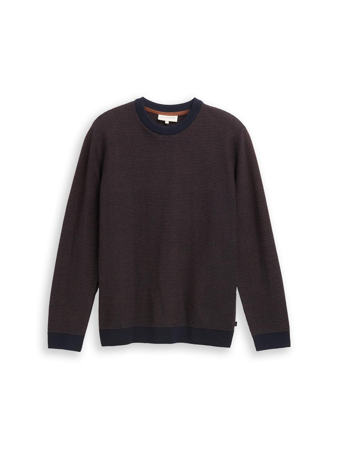 TOM TAILOR Herren Basic Strickpullover aus Baumwolle, blau, Meliert, Gr. S