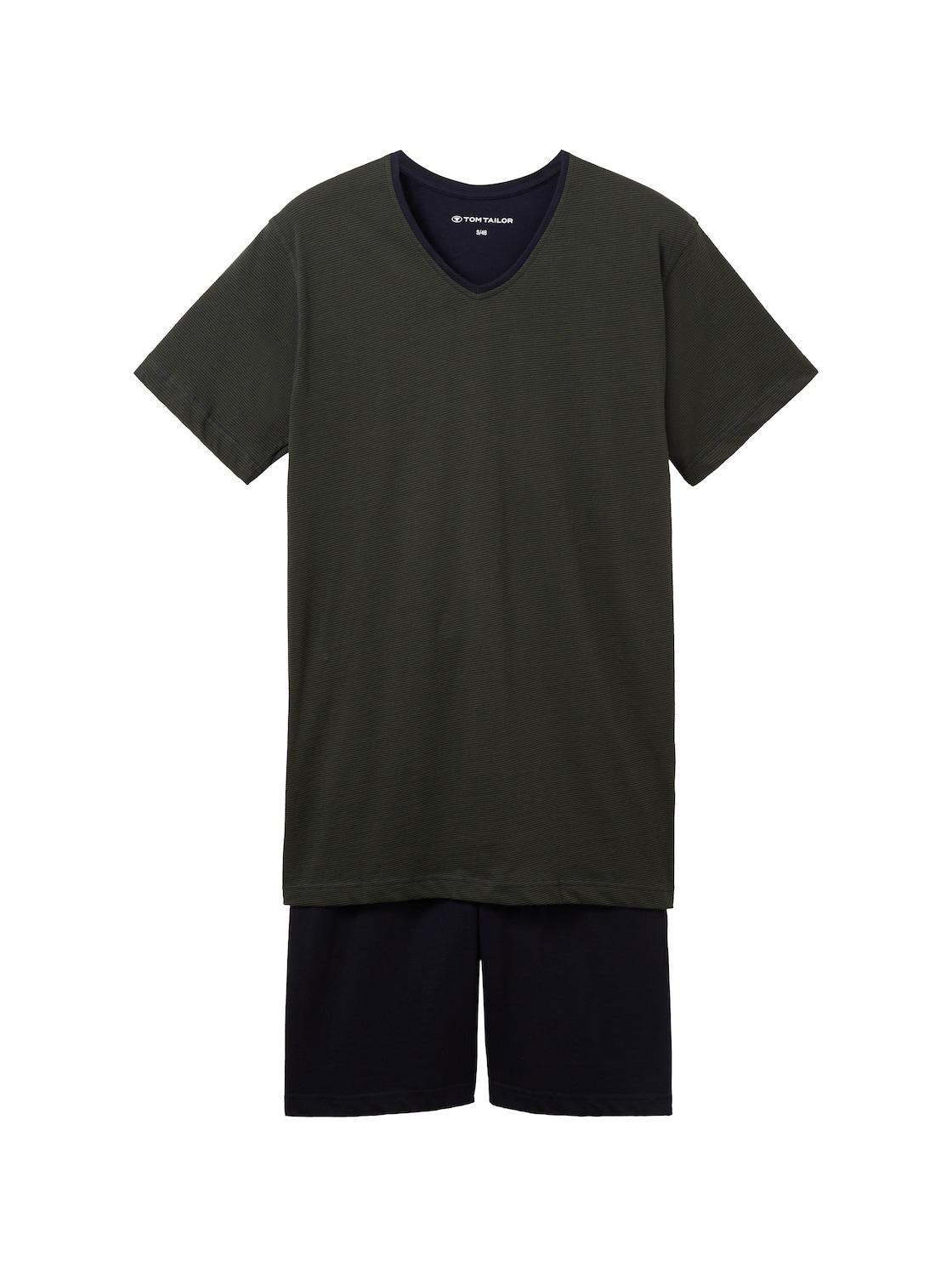 TOM TAILOR Herren Pyjama Shorty, grün, Streifenmuster, Gr. 50