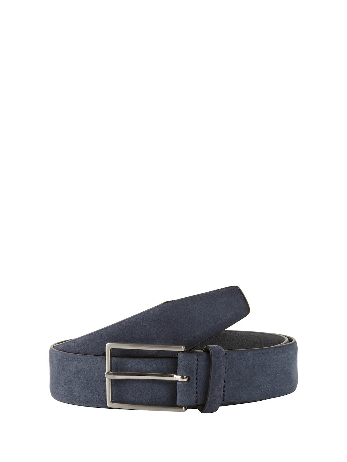 TOM TAILOR Herren TTLOGAN Velourledergürtel mit eckiger Dornschließe, blau, Uni, Gr. 90