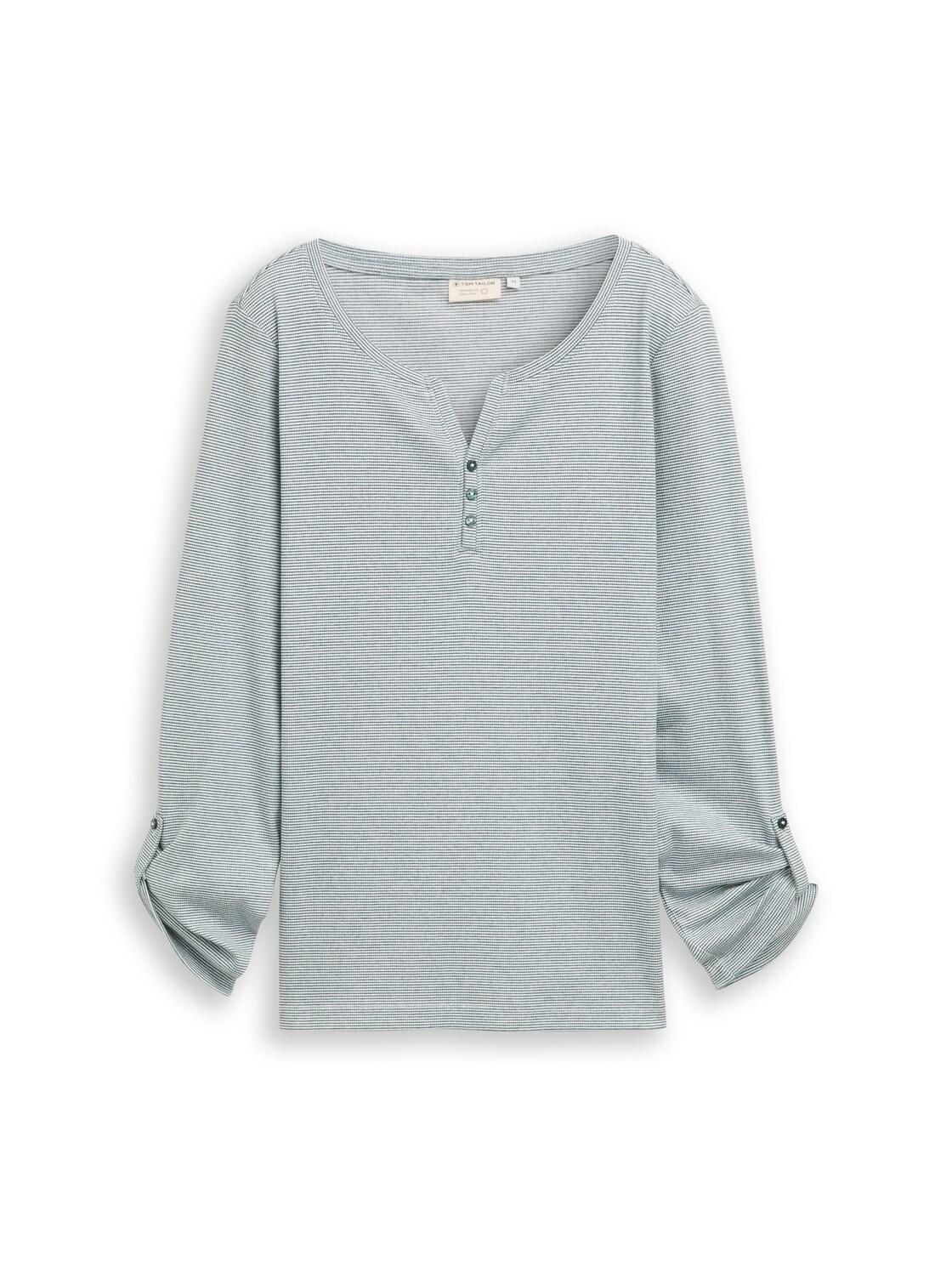 TOM TAILOR Damen Langarmshirt mit Turn-Up-Funktion, grün, Gestreift, Gr. S
