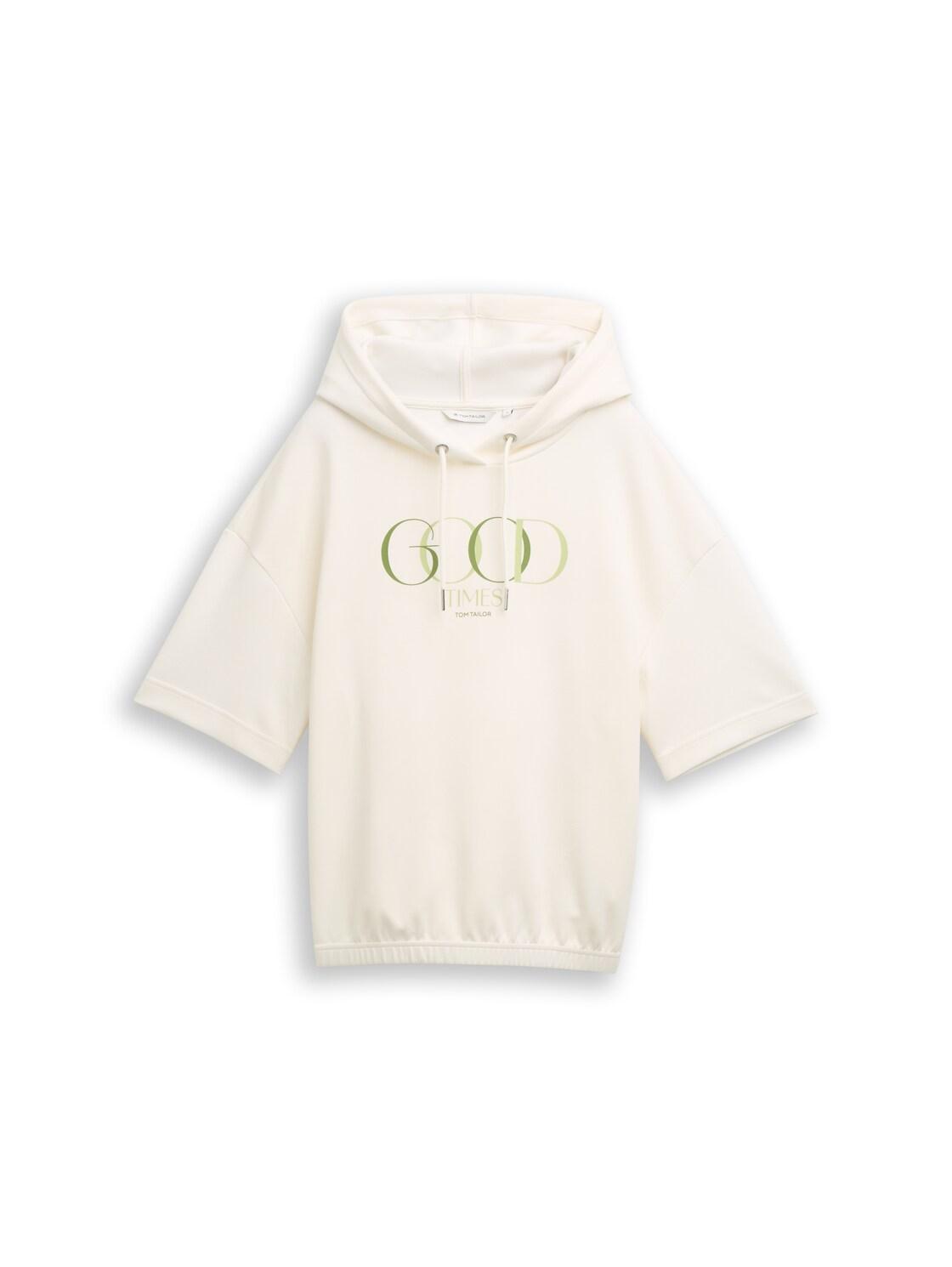 TOM TAILOR Damen Hoodie Sweatshirt aus Scuba, weiß, Uni, Gr. M