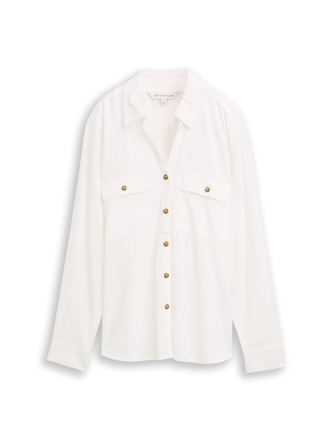 TOM TAILOR Damen Hemdbluse mit Brusttaschen, weiß, Uni, Gr. 34