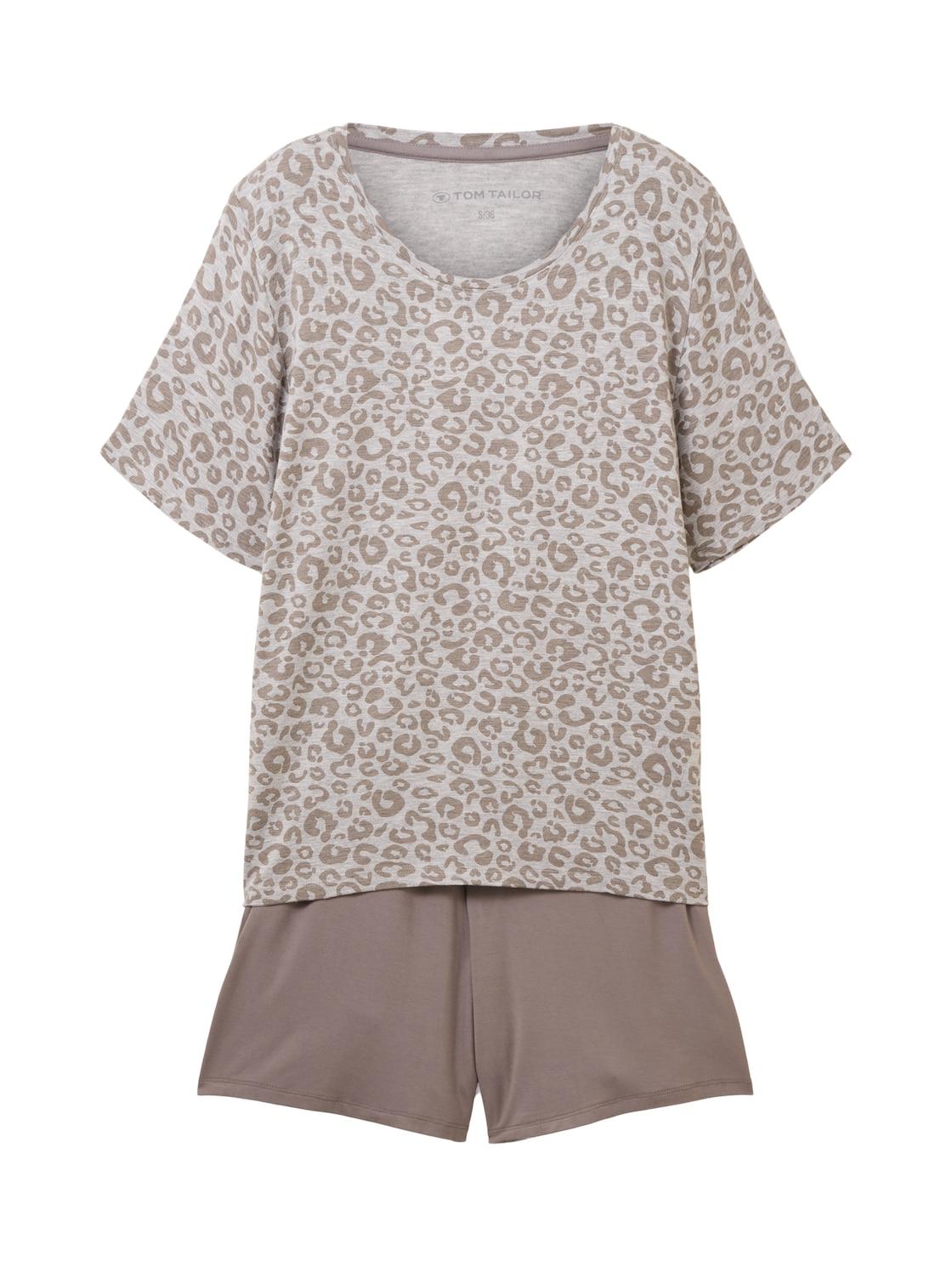TOM TAILOR Damen Pyjama-Set mit Leo-Print, grau, Animalprint, Gr. XXL/44